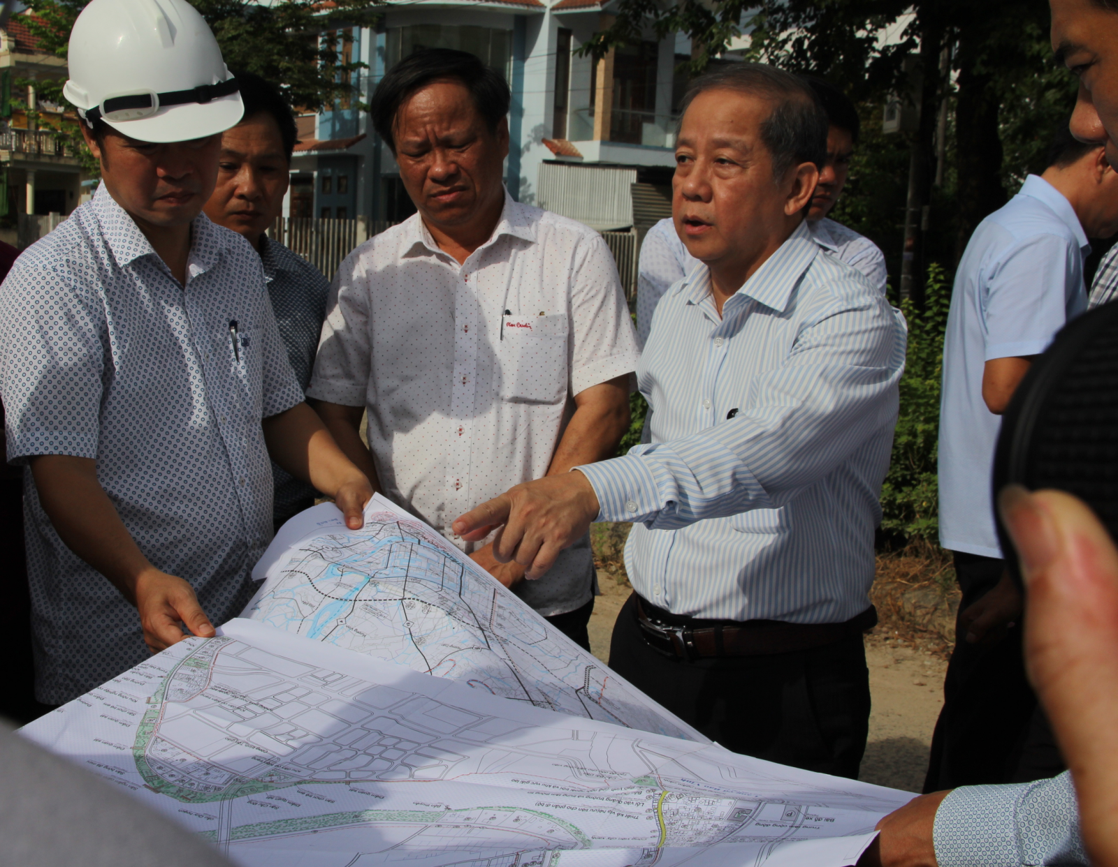 Chủ tịch UBND tỉnh Phan Ngọc Thọ trong một lần kiểm tra dự án chậm tiến độ tại Phú Vang