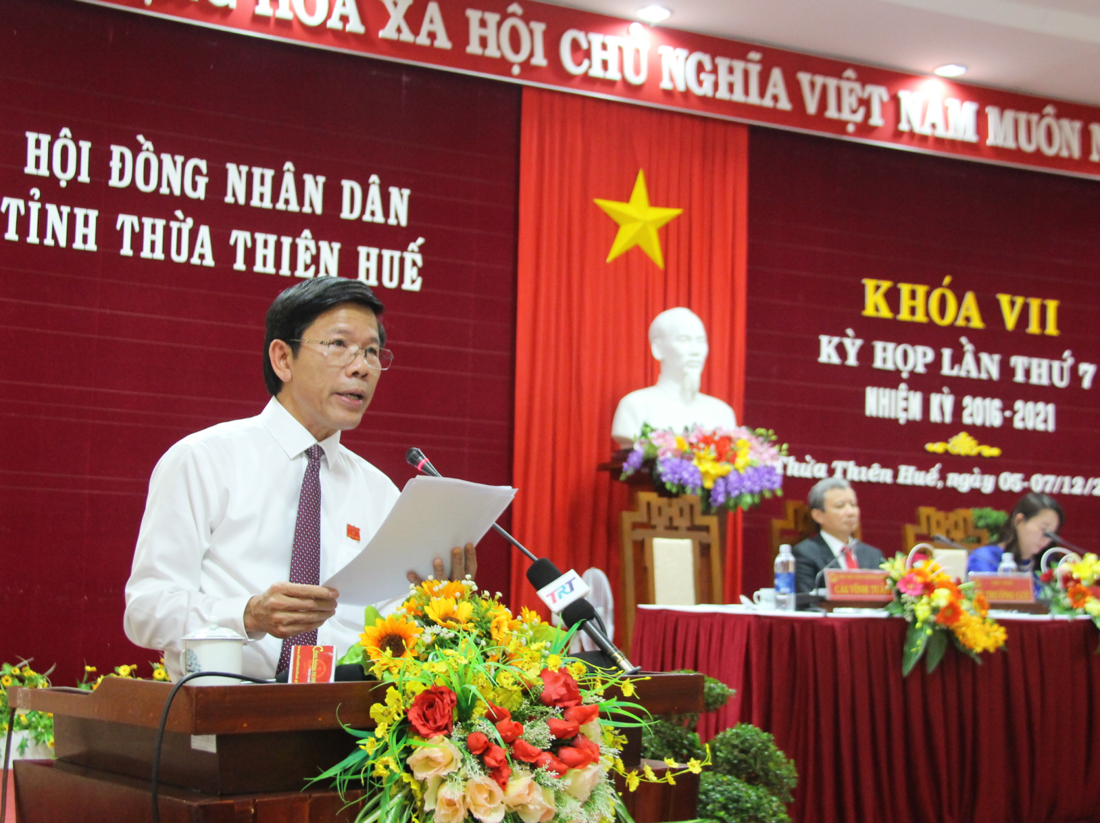 Phó Chủ tịch Thường trực HĐND Cái Vĩnh Tuấn trình bày báo cáo trước HĐND tỉnh