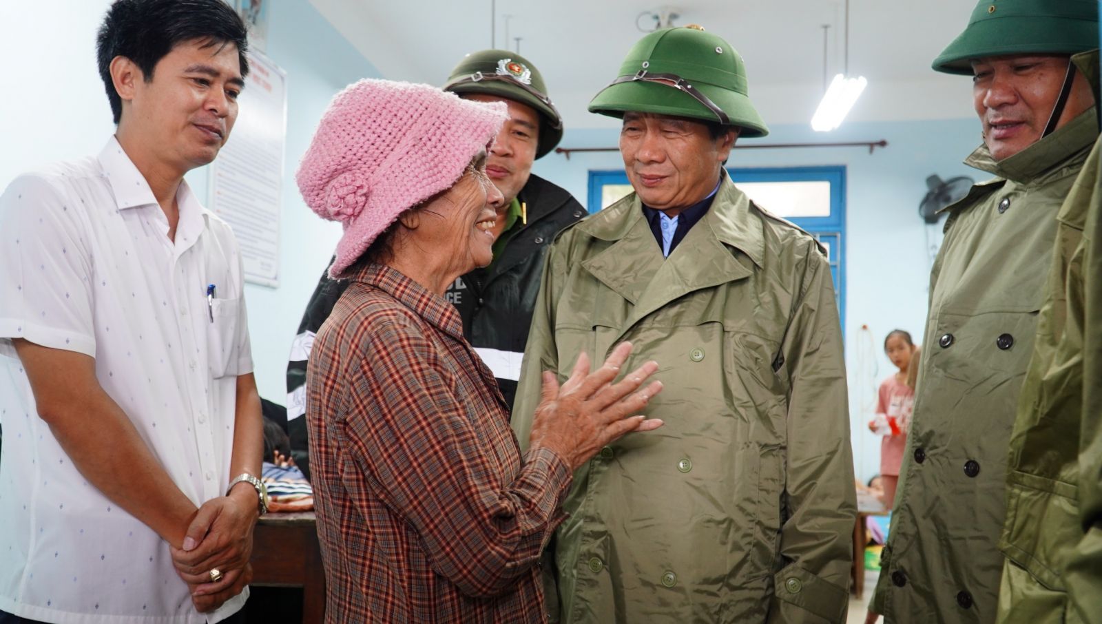 Phó Thủ tướng Lê Văn Thành thăm hỏi người dân di dời do bão tại Trường THCS Thuận An