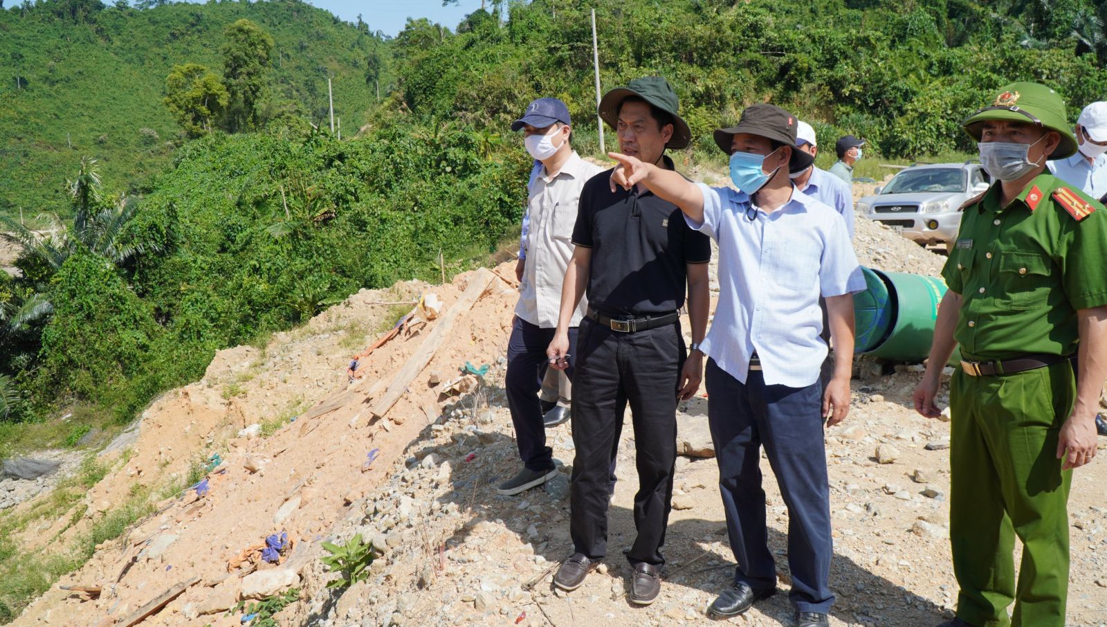 Phó Chủ tịch UBND tỉnh Nguyễn Văn Phương cùng các lực lượng khảo sát tại hiện trường