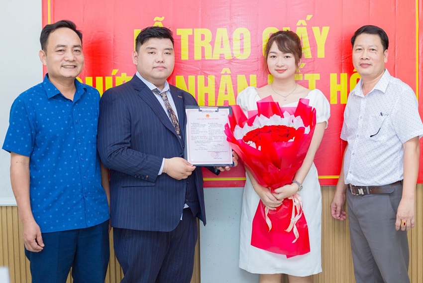 | Xã Vinh Lộc trao giấy đăng ký kết hôn có yếu tố nước ngoài cho người dân |