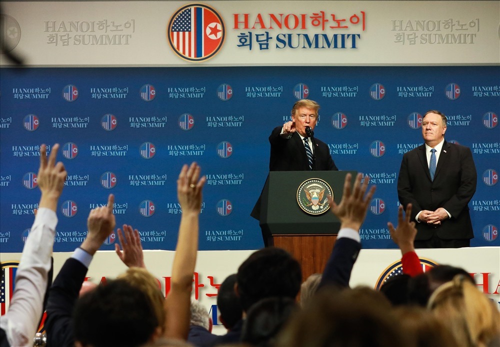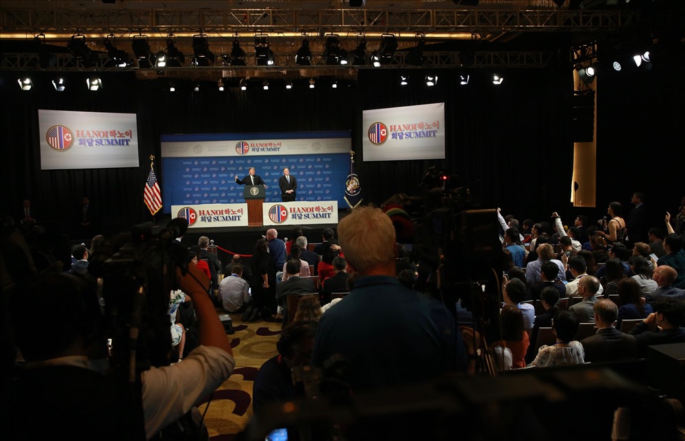 Tổng thống Mỹ giải thích lý do không đạt được thỏa thuận tại Hội nghị Thượng đỉnh Mỹ- Triều 2. Ảnh: Hải Nguyễn