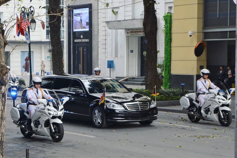 Xe chở Chủ tịch Kim Jong-un rời khách sạn Metropole sau khi bữa trưa bị huỷ bỏ và cũng không có một thỏa thuận cụ thể nào được đưa ra. Ảnh: Thanh Huế.