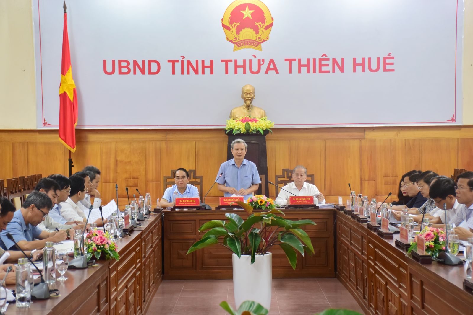 HNN.VN - Sáng 4/10, Ban Thường vụ Tỉnh ủy có buổi làm việc với Ban Thường vụ Thành ủy Huế về tình hình thực hiện Nghị quyết Đại hội Đảng bộ TP. Huế nhiệm kỳ 2015 - 2020 và phương hướng, nhiệm vụ thời kỳ 2020 - 2025. Tham dự có UVTW Đảng, Bí thư Tỉnh ủy, Chủ tịch HĐND tỉnh Lê Trường Lưu; Phó Bí thư Thường trực Tỉnh ủy Bùi Thanh Hà; Phó Bí thư Tỉnh ủy, Chủ tịch UBND tỉnh, Trưởng đoàn ĐBQH tỉnh Phan Ngọc Thọ.