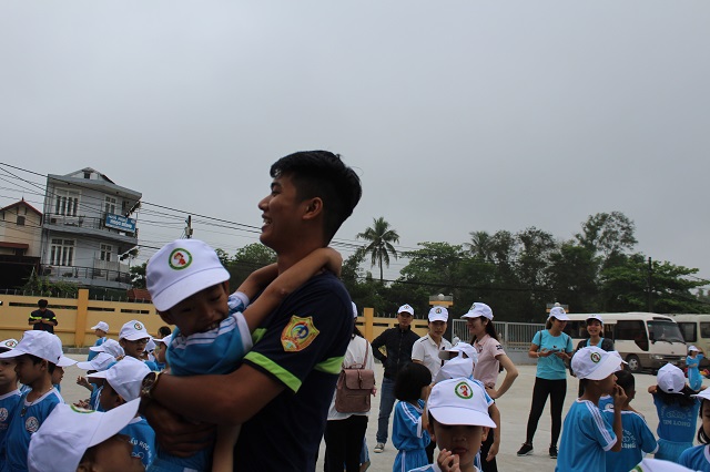 Đúng 7h30 sáng, các “lính cứu hỏa nhí” nhanh chóng di chuyển thành các hàng ngang, tại các khu vực đã quy định để bắt đầu tham gia các trò chơi và trải nghiệm công việc của những người lính cứu hỏa.