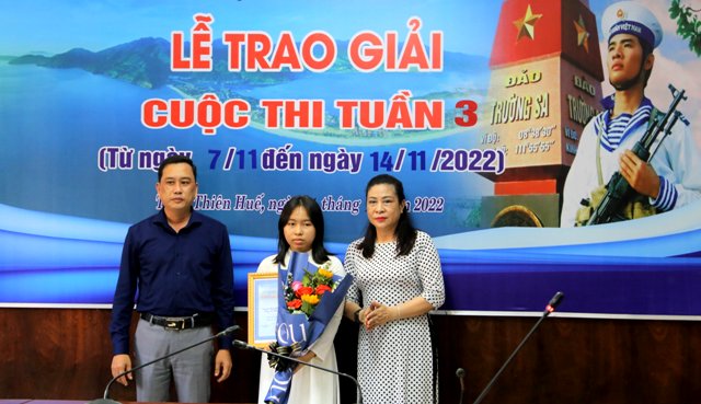 HNN.VN - Chiều 14/11, Ban tổ chức cuộc thi trắc nghiệm trên internet “Tìm hiểu về biển, đảo Việt Nam và đầm phá Thừa Thiên Huế” năm 2022 đã trao giải tuần thứ ba.