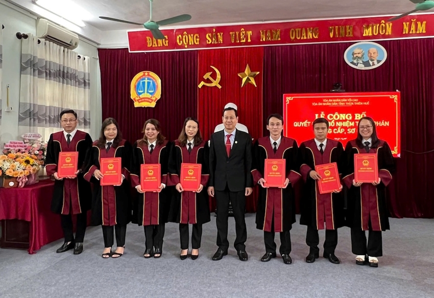 Về chức danh Thẩm phán sơ cấp, bổ nhiệm các ông, bà: Nguyễn Hoàng Anh, Thư ký TAND tỉnh; Nguyễn Thị Huyền, Thư ký TAND TP. Huế; Dương Thanh Huế, Thư ký TAND TP. Huế; Nguyễn Thanh Minh, Thư ký TAND TP. Huế; Nguyễn Hiếu, Chánh Văn phòng TAND thị xã Hương Thủy và Nguyễn Thị Hiền, Thư ký TAND thị xã Hương Trà.