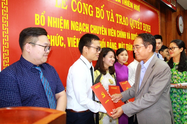 Tại buổi lễ, thay mặt Thường trực Tỉnh ủy, Phó Bí thư Thường trực Tỉnh ủy Bùi Thanh Hà đã trao quyết định bổ nhiệm ngạch chuyên viên chính cho 35 công chức trúng tuyển, nâng ngạch từ chuyên viên lên chuyên viên chính; quyết định tuyển dụng 28 công chức, viên chức khối Đảng, Mặt trận Tổ quốc và các đoàn thể mới trúng tuyển kỳ thi tuyển dụng vừa qua.