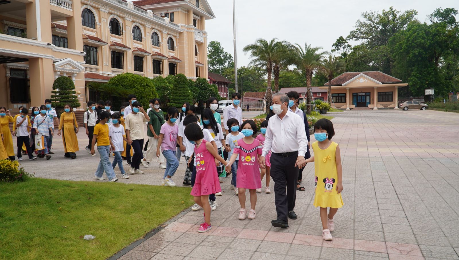 Các em nhỏ được đích thân Chủ tịch UBND hướng dẫn tham quan