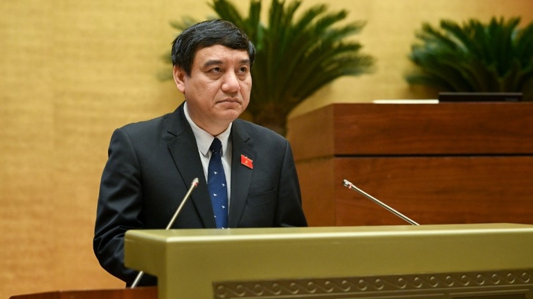 Bộ trưởng Giáo dục và Đào tạo Nguyễn Kim Sơn trình bày Tờ trình về chủ trương đầu tư Chương trình mục tiêu quốc gia hiện đại hóa, nâng cao chất lượng giáo dục và đào tạo giai đoạn 2026-2035. (Ảnh: DUY LINH)