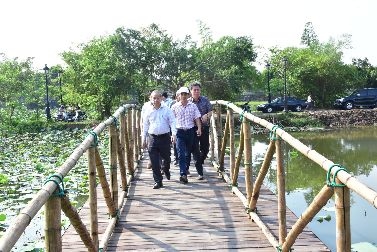 Thêm một cây cầu bắc qua đảo giữa hồ Tịnh Tâm vừa hoàn thành