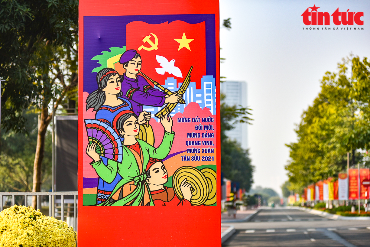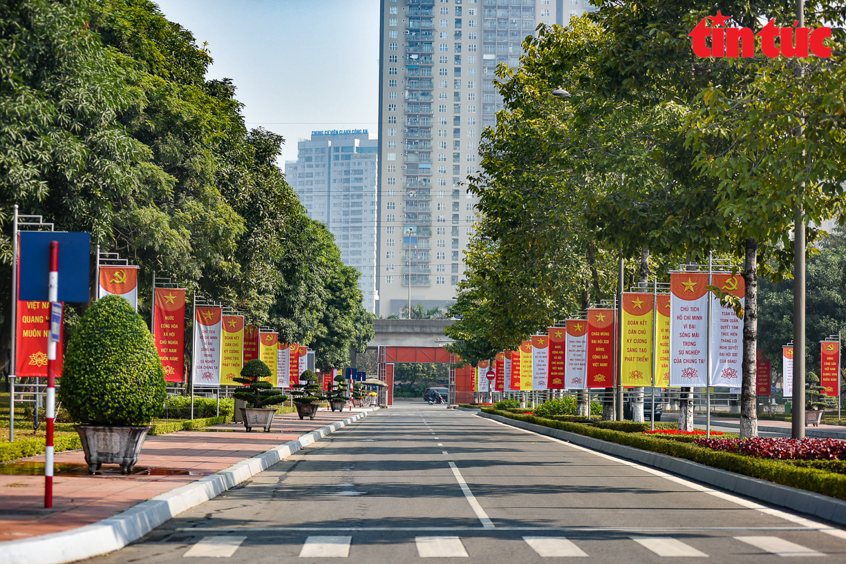 Các tuyến đường dẫn vào Trung tâm Hội nghị đều được trang hoàng rực rỡ.