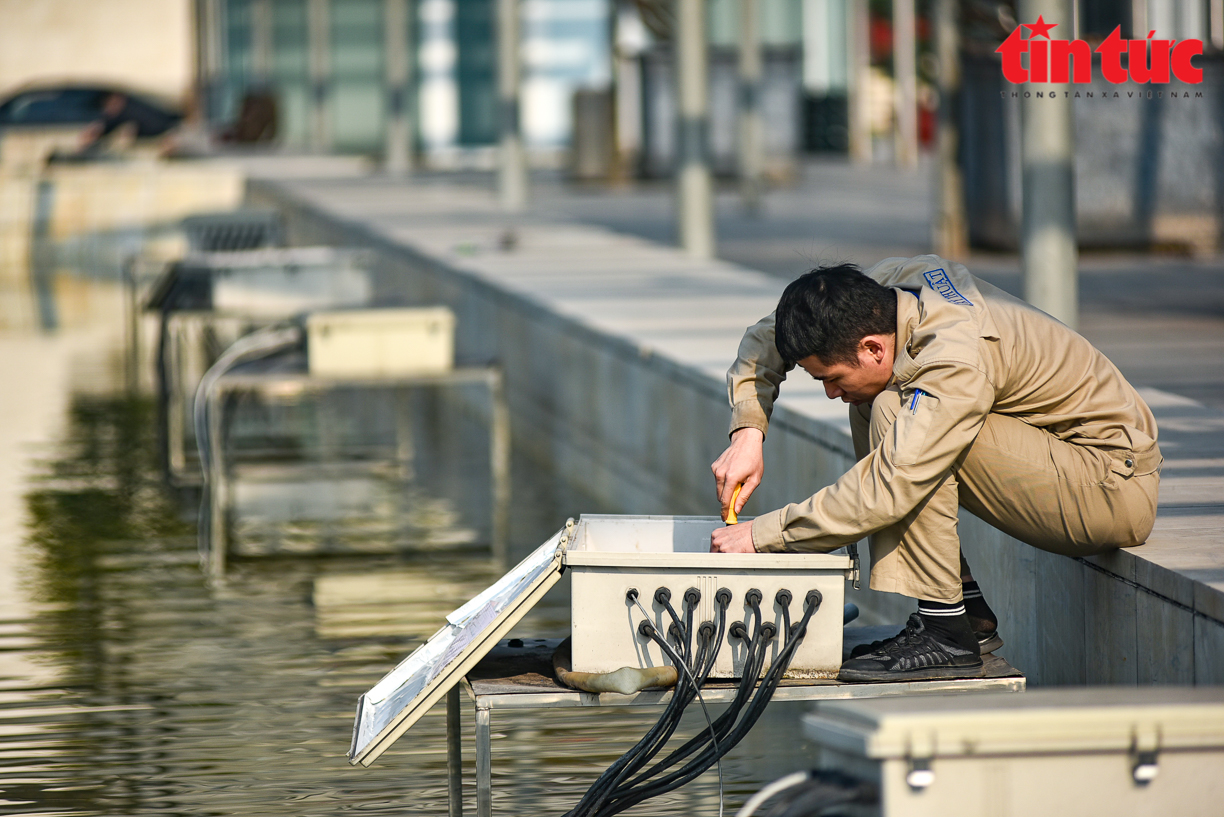 Hệ thống ánh sáng và các đài phun nước đang được kiểm tra lần cuối.