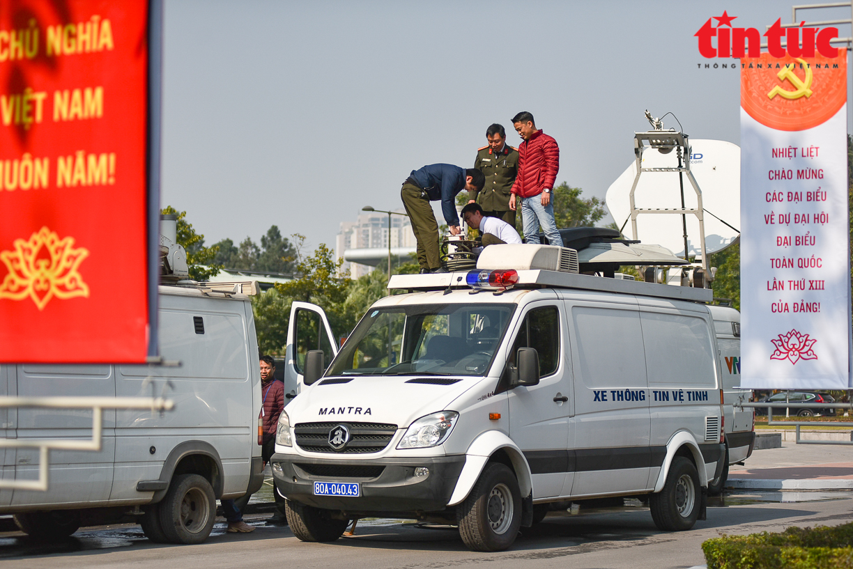 Hệ thống xe kỹ thuật của nhiều cơ quan báo chí đang khẩn trương lắp đặt và chạy thử.