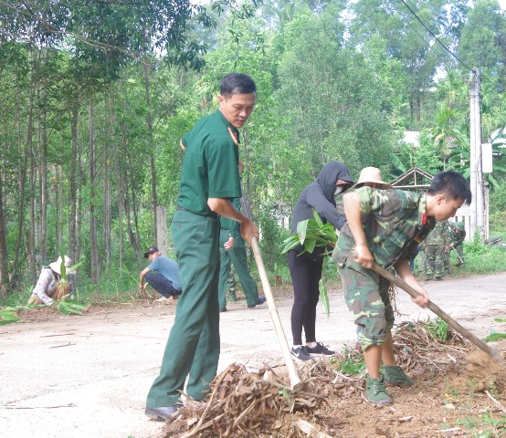 Hơn 50 cán bộ, học viên cùng với bà con Nhân dân thôn Kim Sơn đã thu gom rác thải, phát quang bụi rậm, cỏ dại và dọn dẹp vệ sinh dọc các tuyến đường làng, ngõ xóm. Đồng thời, tổ chức trồng các loại hoa, cây cảnh dọc 2 bên đường để tạo cảnh quan môi trường xanh, sạch, đẹp cho thôn, xóm.
