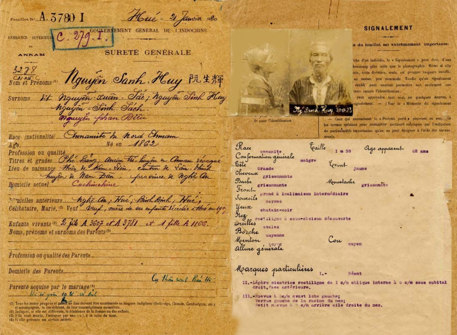 Hồ sơ mật thám theo dõi cụ Nguyễn Sinh Sắc