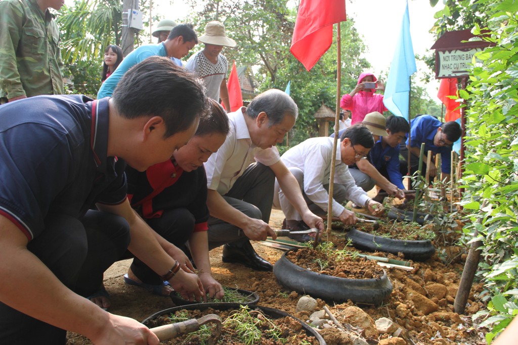 Chủ tịch UBND tỉnh Phan Ngọc Thọ cùng người dân A Lưới trồng hoa hưởng ứng Ngày Chủ nhật xanh. Ảnh: Thái Bình
