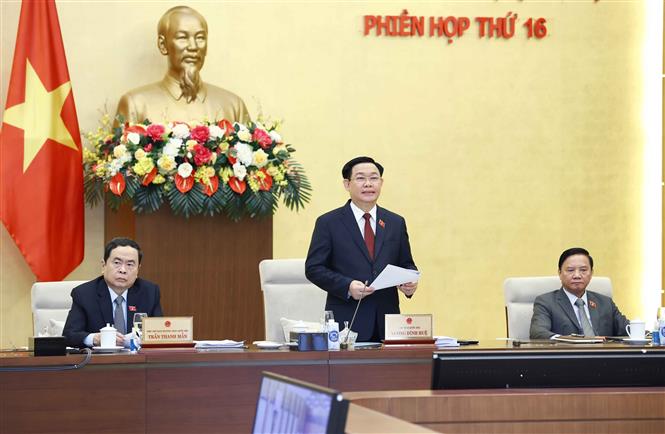 Chủ tịch Quốc hội Vương Đình Huệ phát biểu khai mạc Phiên họp thứ 16 của Ủy ban Thường vụ Quốc hội. Ảnh: Doãn Tấn/TTXVN.