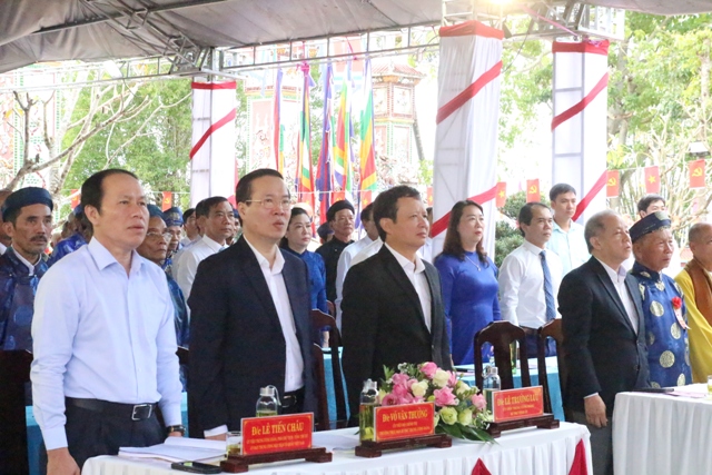 Cùng dự với Thường trực Ban Bí thư Võ Văn Thưởng có UVTW Đảng, Phó Chủ tịch - Tổng thư ký Ủy ban Trung ương MTTQ Việt Nam Lê Tiến Châu; UVTW Đảng, Bí thư Tỉnh ủy, Chủ tịch HĐND tỉnh, Trưởng đoàn ĐBQH tỉnh Lê Trường Lưu; Phó Bí thư Thường trực Tỉnh ủy Phan Ngọc Thọ; Phó Bí thư Tỉnh ủy, Chủ tịch UBND tỉnh Nguyễn Văn Phương; UVTV Tỉnh ủy, Chủ tịch UBMTTQ Việt Nam tỉnh Nguyễn Nam Tiến; UVTV Tỉnh ủy, Bí thư Thành ủy Huế Phan Thiên Định; Thường trực HĐND, UBND, UBMTTQ Việt Nam tỉnh, TP. Huế và phường An Hòa.