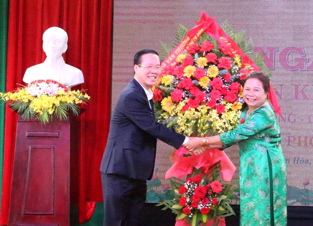 Thường trực Ban Bí thư Võ Văn Thưởng tặng hoa chúc mừng ngày hội