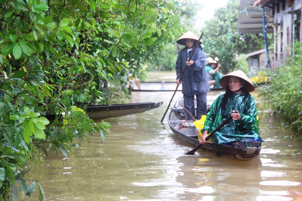 Theo đại diện địa phương, toàn xã có 12 thôn với khoảng 2.000 hộ, gần 9.000 dân. Tất cả chìm trong biển nước, mất điện hoàn toàn. Mọi việc đi lại gần 10 ngày qua chủ yếu bằng thuyền. Những ngày qua thuyền của xã phải chạy liên tục để vận chuyển hàng cứu trợ vào cho người dân. Mỗi lần di chuyển như thế gặp rất nhiều khó khăn bởi mưa lớn kéo dài, đường vào các làng phải băng qua những cánh đồng mênh mông, sóng nước rất nguy hiểm.