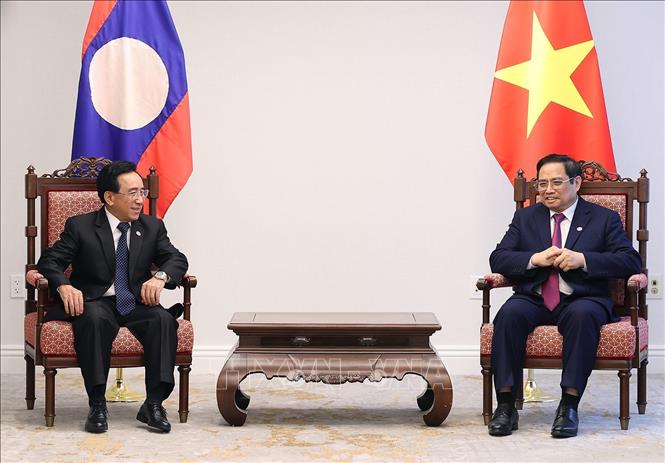 Thủ tướng Chính phủ Phạm Minh Chính tiếp Thủ tướng Lào Phankham Viphavanh. Ảnh: Dương Giang/TTXVN