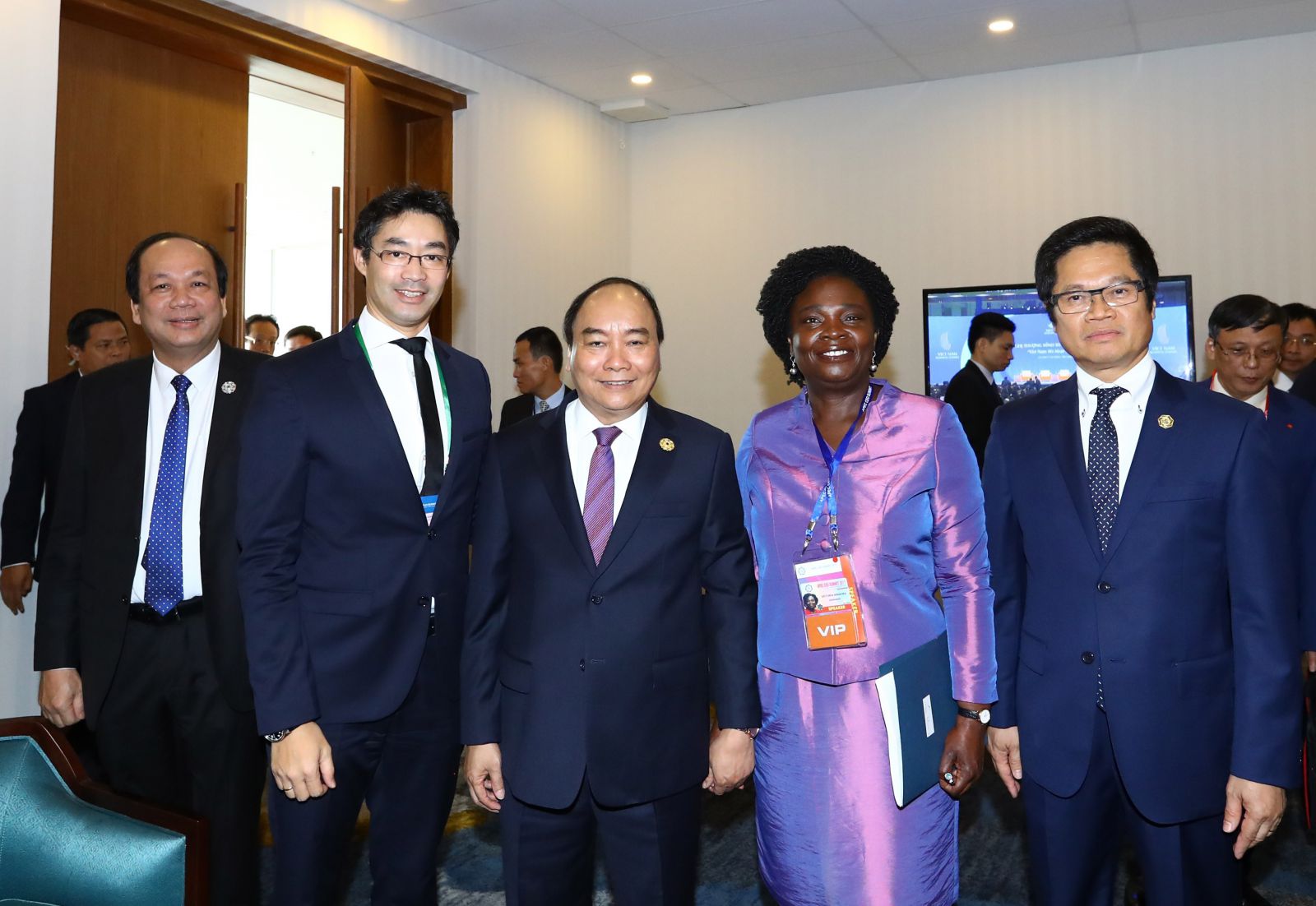 Thủ tướng Nguyễn Xuân Phúc (thứ 2 từ trái sang) đối thoại với các doanh nghiệp trong nước và quốc tế tại Hội nghị VBS