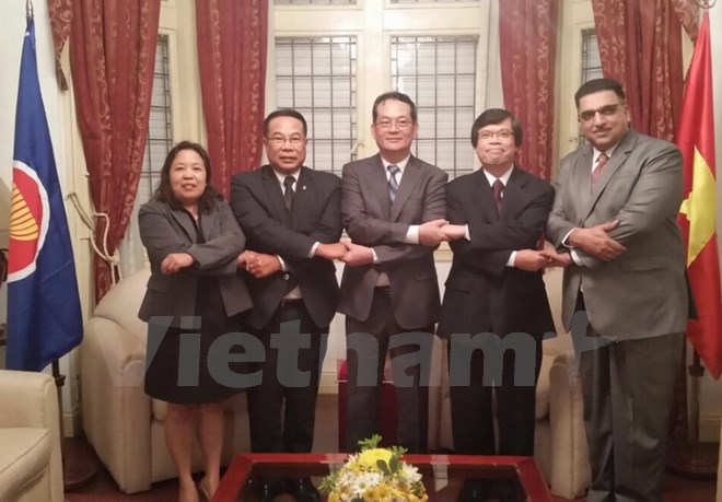 Đại sứ 5 nước ASEAN tại Argentina trong buổi tổng kết năm chủ tịch luân phiên của Việt Nam. (Ảnh: Diệu Hương/Vietnam+)