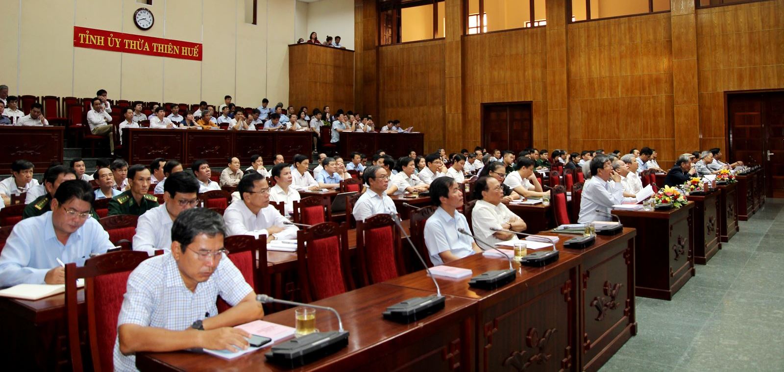 Ủy viên Bộ Chính trị, Thường trực Ban Bí thư Võ Văn Thưởng chủ trì hội nghị. UVTW Đảng, Bí thư Tỉnh ủy, Chủ tịch HĐND tỉnh Lê Trường Lưu; Phó Bí thư Tỉnh ủy, Chủ tịch UBND tỉnh, Trưởng Đoàn ĐBQH tỉnh Phan Ngọc Thọ chủ trì tại điểm cầu Thừa Thiên Huế.