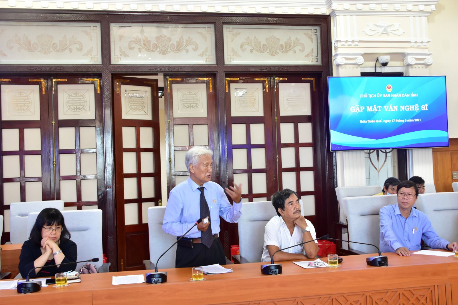 Chủ tịch UBND tỉnh khẳng định tiềm lực của văn nghệ sĩ, trí thức, nhà nghiên cứu Huế rất hùng hậu và có uy tín, vấn đề là làm thế nào để khơi gợi tiềm năng ấy. Tại buổi gặp mặt này, lãnh đạo tỉnh mong muốn được lắng nghe những ý kiến tâm huyết, những đề xuất về phát triển Thừa Thiên Huế trong thời gian tới của nhà văn hóa, nghiên cứu và đội ngũ văn nghệ sĩ Huế.
