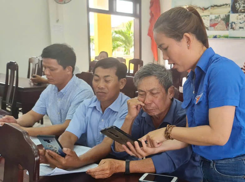 | Đoàn viên thanh niên huyện Quảng Điền hỗ trợ người dân sử dụng dịch vụ công trực tuyến |