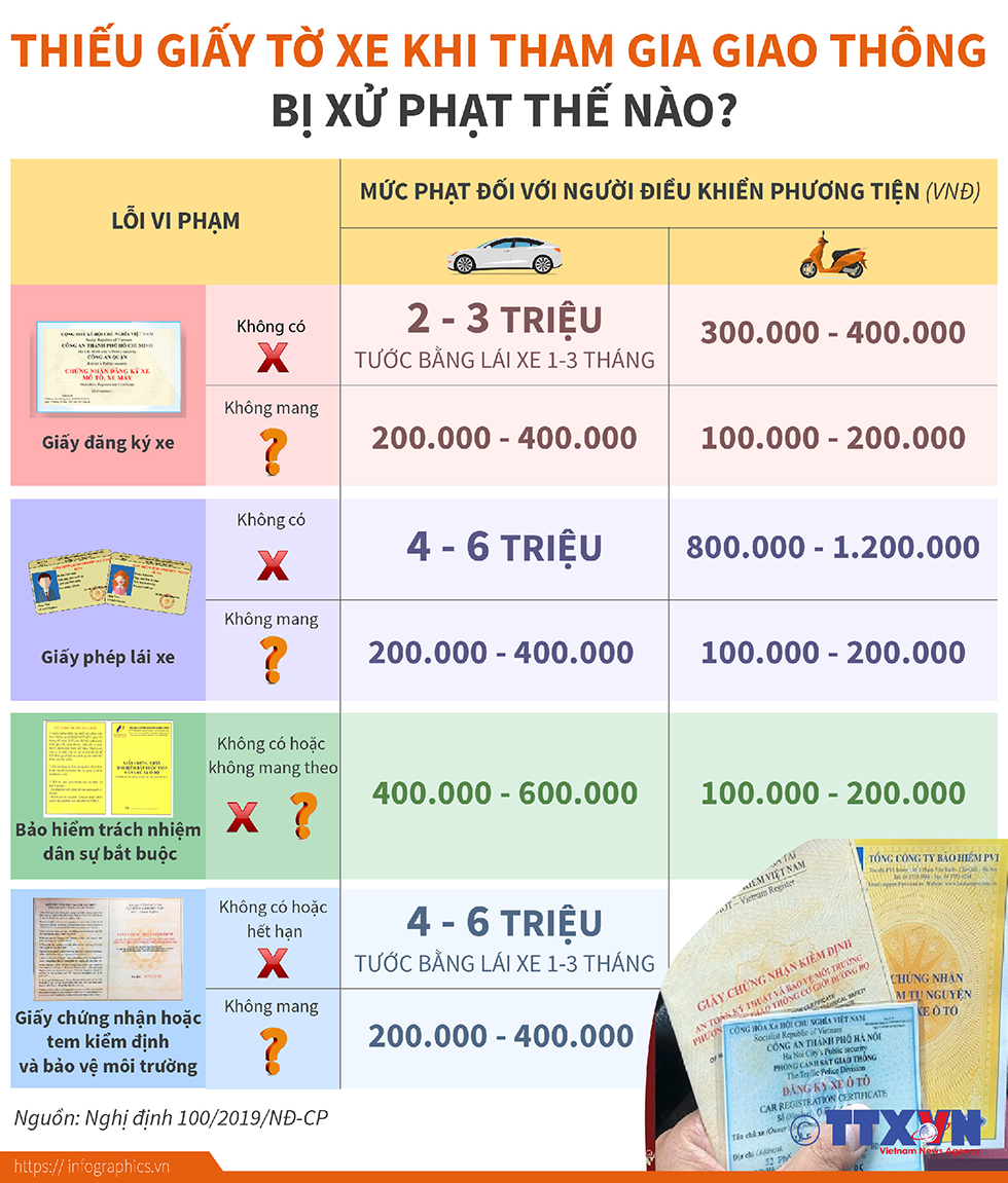 Thiếu giấy tờ xe khi tham gia giao thông bị xử phạt thế nào?