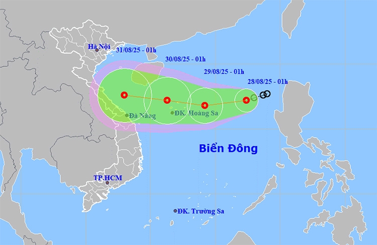 Trên biển, hồi 1 giờ ngày 28/8, tâm áp thấp nhiệt đới ở khoảng 17,2 độ Vĩ Bắc; 117,4 độ Kinh Đông, trên vùng biển phía Đông Bắc Biển Đông. Sức gió mạnh nhất vùng gần tâm áp thấp nhiệt đới đạt cấp 6 (39 - 49km/giờ), giật cấp 8. Dự báo trong 24 giờ tới, áp thấp nhiệt đới di chuyển theo hướng Tây Tây Nam với tốc độ 10 - 15km/giờ.