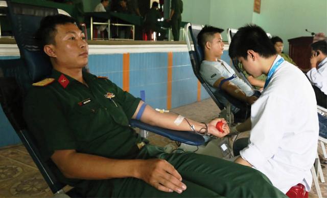 Trung úy chuyên nghiệp Nguyễn Tiến Thành tham gia hiến máu tình nguyện