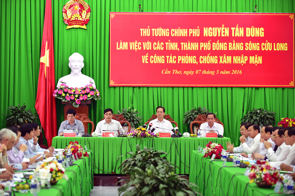 Tham dự buổi làm việc có lãnh đạo các bộ, ngành chức năng và 11 tỉnh/thành phố bị ảnh hưởng của tình trạng xâm nhập mặn trong vùng.