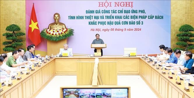 | Thủ tướng Phạm Minh Chính chủ trì hội nghị đánh giá thiệt hại và khắc phục hậu quả cơn bão số 3. Ảnh: Dương Giang/TTXVN |