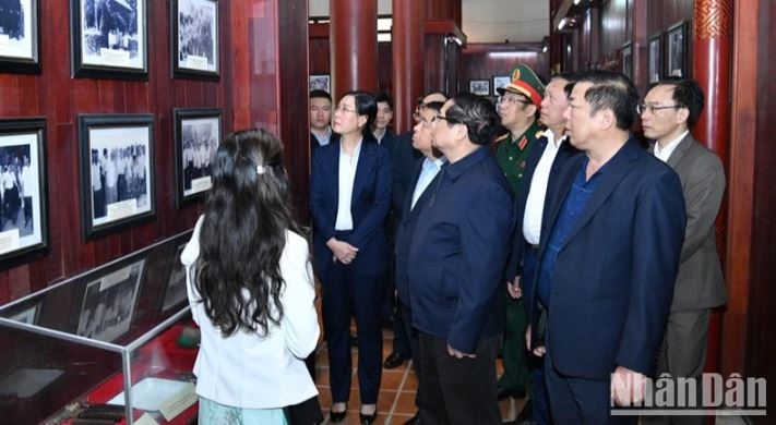 Thủ tướng Phạm Minh Chính tham quan gian trưng bày các tư liệu, hiện vật về cuộc đời hoạt động cách mạng của Thủ tướng Phạm Văn Đồng (Ảnh: THANH GIANG).