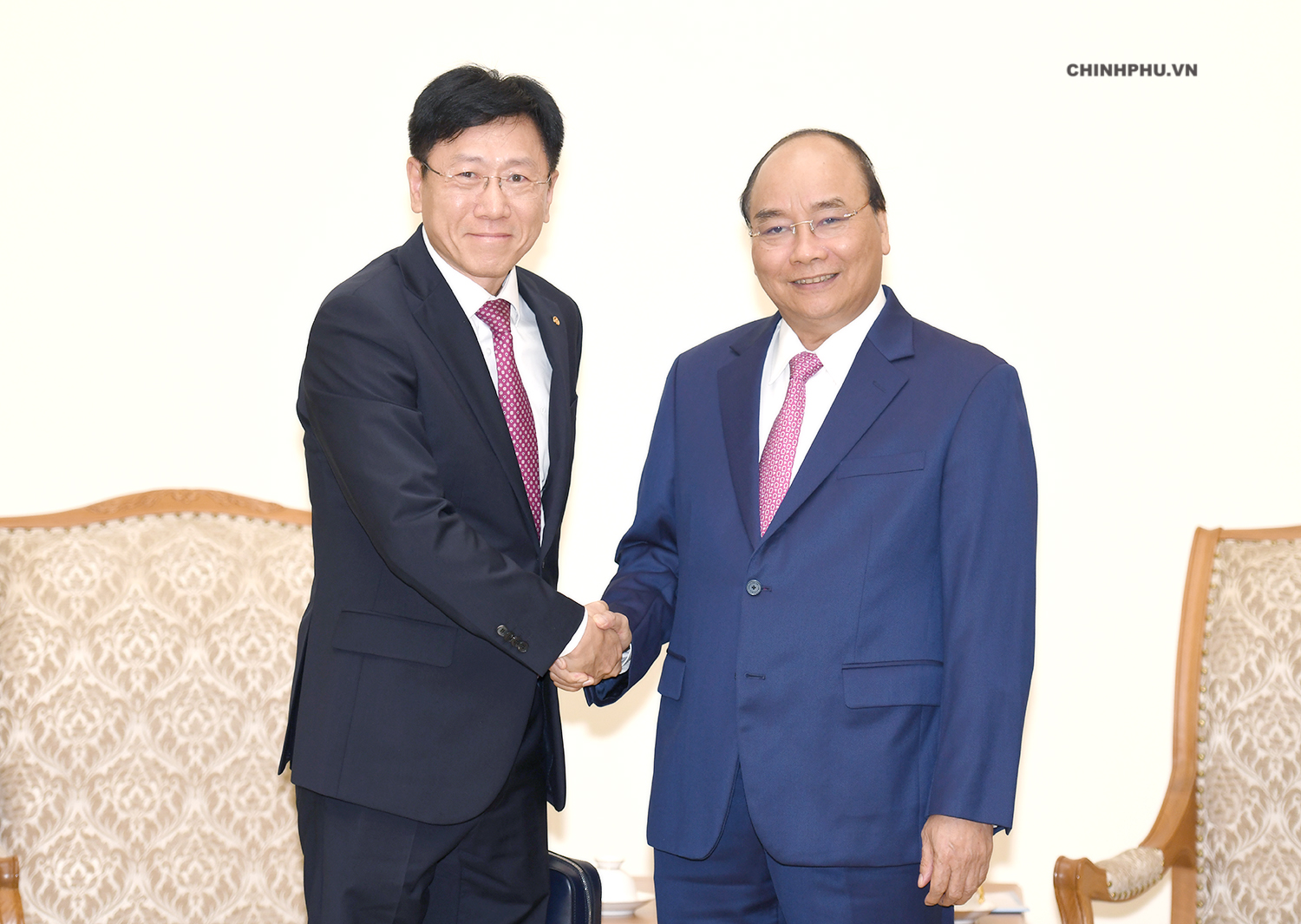 Thủ tướng Nguyễn Xuân Phúc tiếp ông Youn Chul Kim, Chủ tịch Công ty Hanwha Techwin (Hàn Quốc)