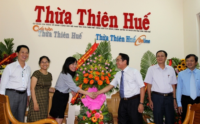 Cùng ngày, Chủ tịch UBND tỉnh Nguyễn Văn Cao đã đến thăm Báo Thừa Thiên Huế, tặng hoa chúc mừng một số cơ quan thường trú báo chí trên địa bàn.