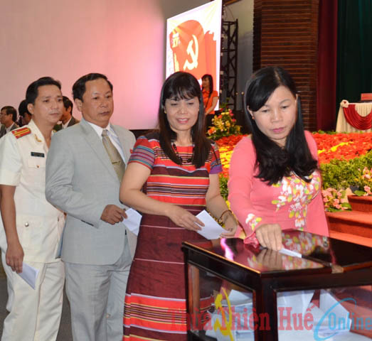Đại biểu bỏ phiều bầu Ban Chấp hành Đảng bộ tỉnh khóa XV