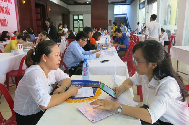 Khu nghỉ dưỡng Làng Hành Hương tham gia ngày hội để tuyển nhiều vị trí việc làm, như: bếp, buồng, nhân viên an ninh, nhân viên kế toán… Thùy Ngân, công tác tại bộ phận nhân sự khu nghỉ dưỡng này cho hay, có những vị trí yêu cầu kỹ năng, chuyên môn, kinh nghiệm và ngoại ngữ nhưng có những vị trí chỉ cần người lao động có thái độ làm việc tốt, còn kỹ năng công ty sẽ đào tạo nên người lao động có thể tự tin ứng tuyển.