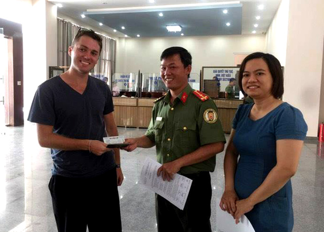 Trao trả hộ chiếu cho ông Arthur Gromko-Vallée (Ảnh Sở Du lịch cung cấp)