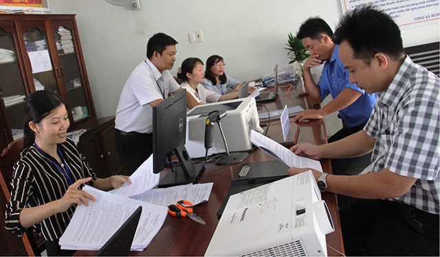 Tinh giản biên chế nhằm nâng cao hiệu quả, hiệu lực ở bộ máy nhà nước (Trong ảnh: Giao dịch tại trụ sở UBND xã Hương Giang, huyện Nam Đông)