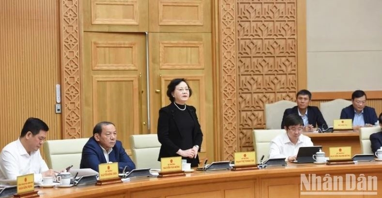 | Bộ trưởng Nội vụ Phạm Thị Thanh Trà báo cáo tại Hội nghị. (Ảnh: Trần Hải) |