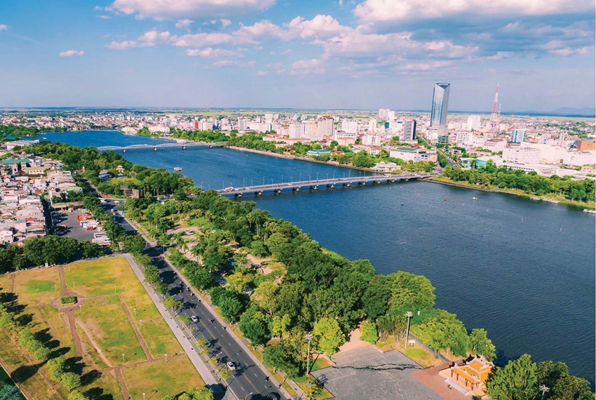 | Trung tâm thành phố Huế nhìn từ trên cao. Ảnh: HOÀNG LÊ |