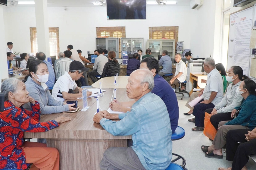 | Người dân xã Quảng Điền đến làm thủ tục hành chính tại Trung tâm Phục vụ hành chính công của xã |