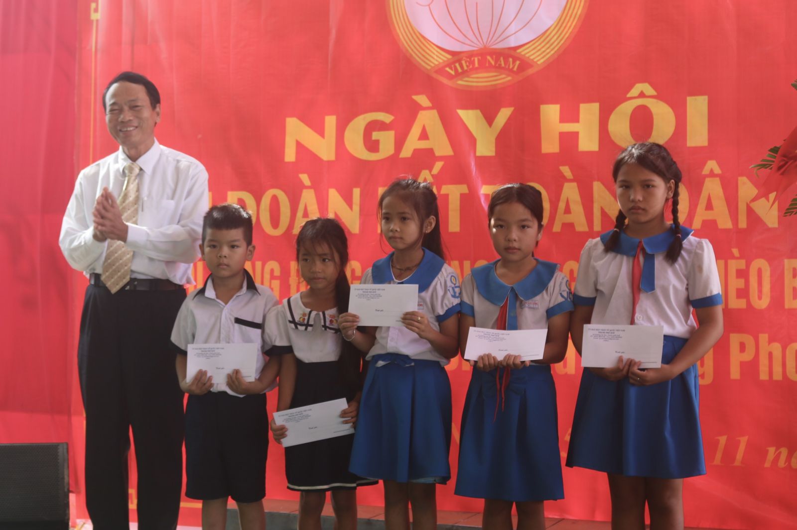 Tặng học bổng cho các em học sinh nghèo vượt khó tại Ngày hội Đại đoàn kết
