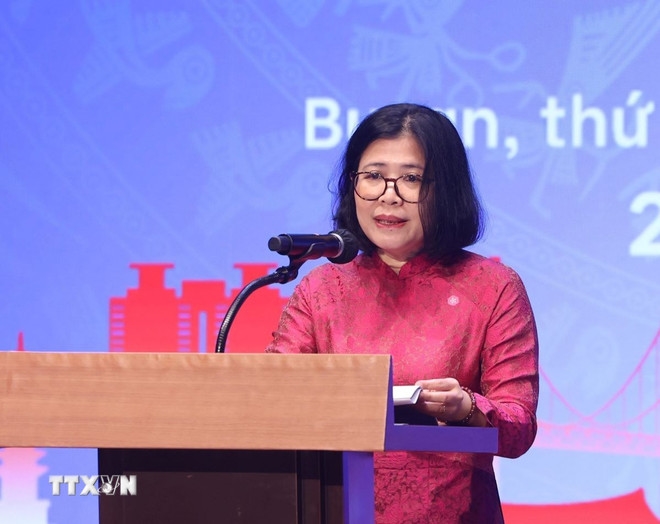 | Bà Đoàn Phương Lan, Tổng lãnh sự Việt Nam tại Busan phát biểu. (Ảnh: Thống Nhất/TTXVN) |