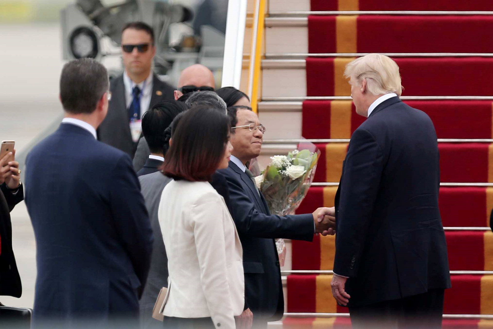Tổng thống Mỹ Donald Trump chào các quan chức Việt Nam trước khi lên chuyên cơ rời Hà Nội