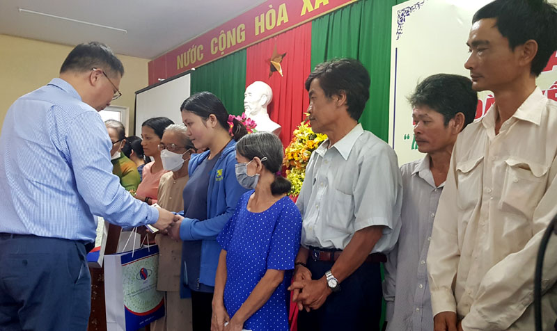 Ông Châu Văn Minh trao quà cho các hộ nghèo tổ dân phố 6, phường Tây Lộc
